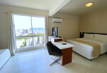 Nosso apartamento mais completo com uma confortável cama Queen Size e todos os recursos do Altadomo.